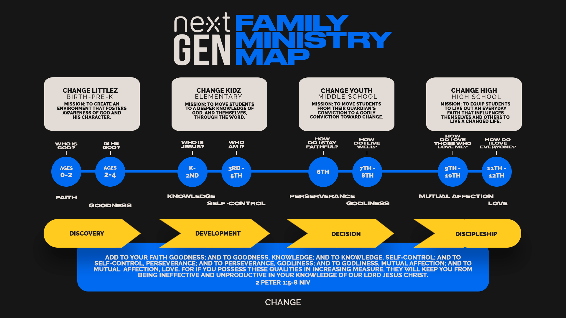 Our Mission: To move students from their guardian’s conviction to a Godly conviction toward Change and equip them to live out everyday faith that influences themselves and others to live a changed life.